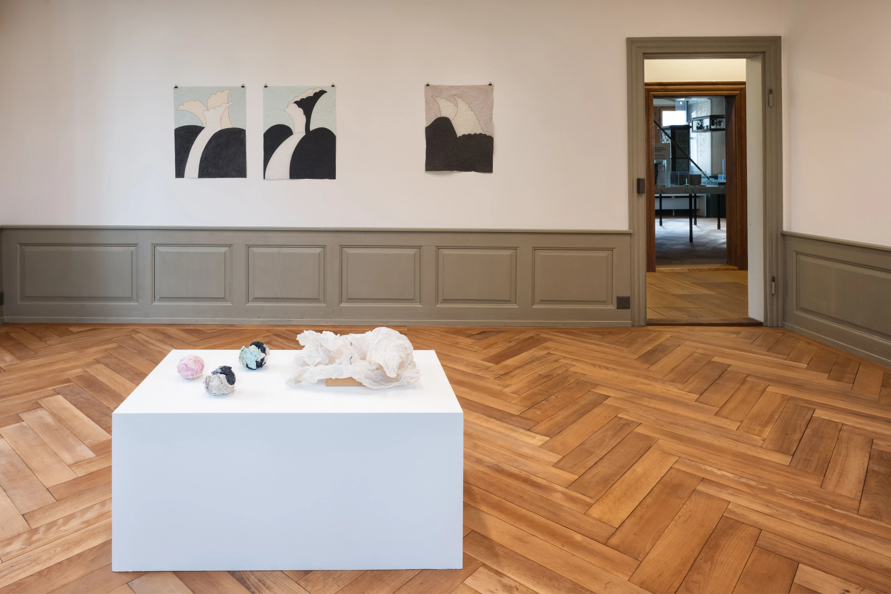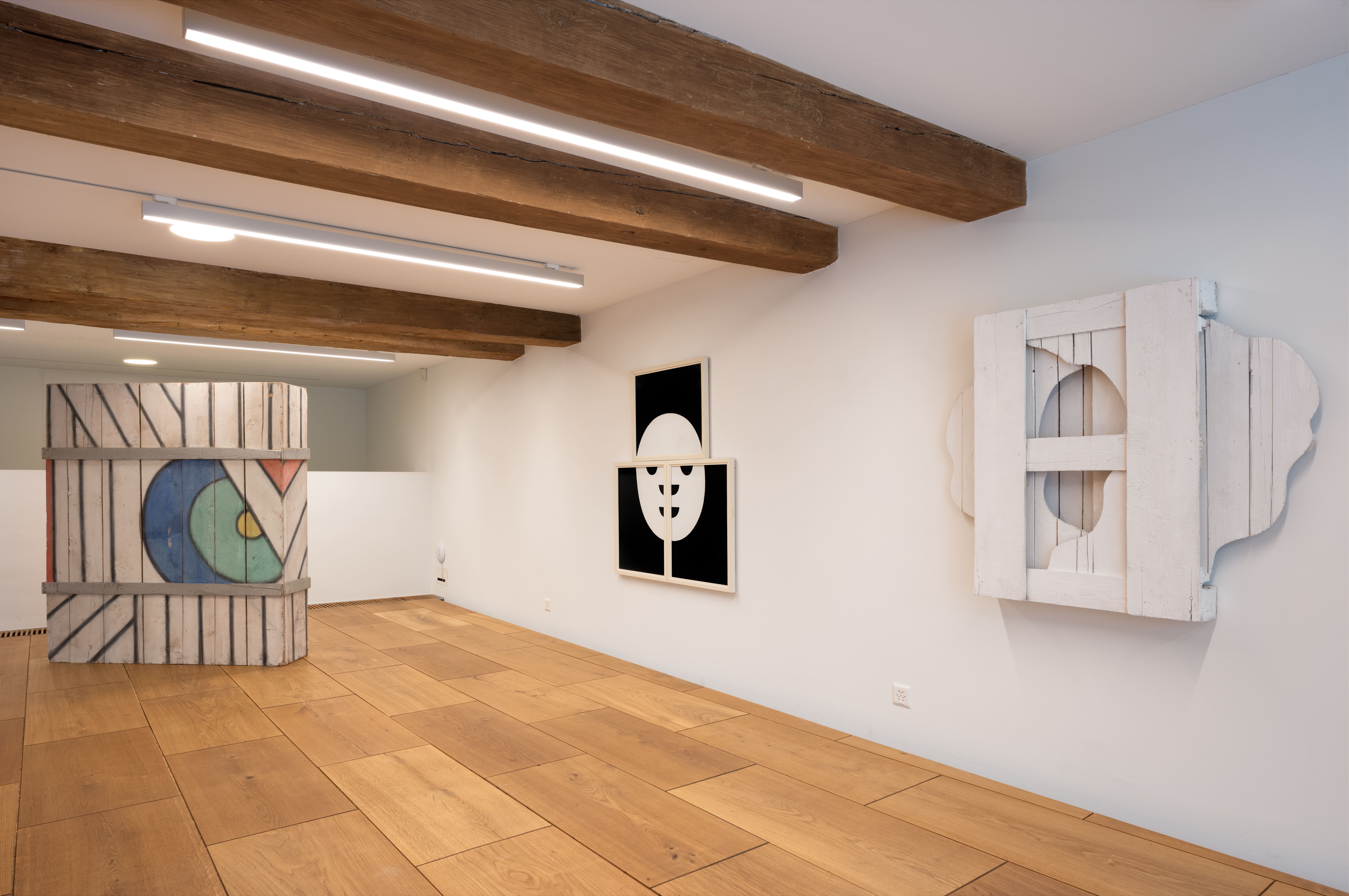 Installationsansicht «Alfonso Hüppi. Falten Klappen Knautschen», Museum Sankturbanhof, 2023; Foto: Christian Hartmann.